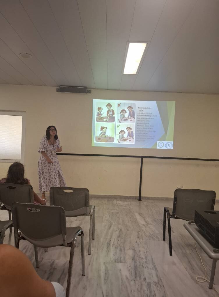 Επίσκεψη σε παιδικό Σταθμό Γαζίου για Ομιλία Διατροφής σε παιδιά έως 5,5 ετών, με διαδραστικά παιχνίδια και βιωματική προσέγγιση.